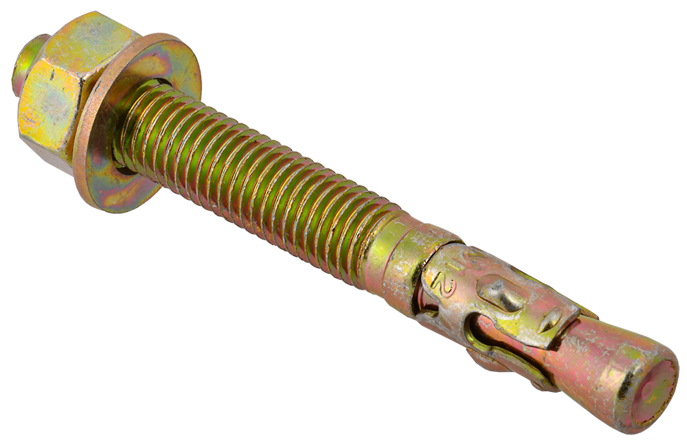 Область применения: крепление несущих металлических конструкций (опорные элементы колонн, балок), стоек и кронштейнов тяжелых кабеленесущих систем. Материал применения: полнотелый кирпич, бетон, природный камень. Способ установки: предварительный и сквозной монтаж. Материал анкера: углеродистая сталь. Покрытие: Гальваническое с дополнительной пассивацией желтого цвета. Особенности: диаметр метрической резьбы совпадает с общим диаметром анкера и отверстия под установку.