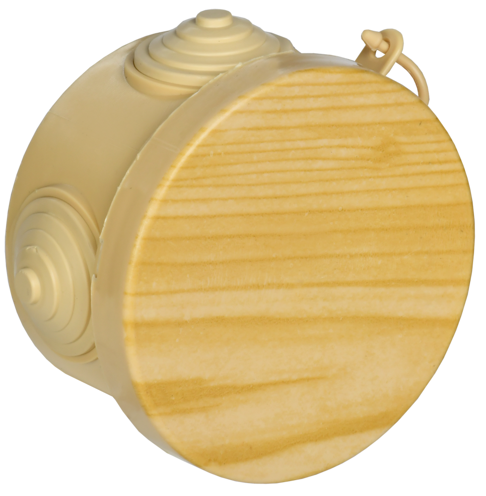 Монтажные коробки для открытого монтажа под структуру дерева предназначены для разветвления проводов и кабелей, также для скрытия и дополнительной защиты мест коммутации. Коробки для открытого монтажа используются как часть системы решений для деревянного домостроения, состоящей из гофрированных труб, клипс и коробок в цвет дерева.