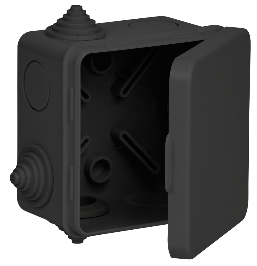 Монтажные коробки для открытого монтажа предназначены для разветвления проводов и кабелей, также для скрытия и дополнительной защиты мест коммутации. Используются как часть системы электрической канализации, состоящей из жестких и гофрированных труб. Коробки с повышенной степенью защиты могут быть использованы на открытом воздухе, а также во влажных и пыльных помещениях. Материал изготовления: полипропилен. Материал коробок является безгалогенным («HF» — halogen-free). Цвет: черный. Степень защиты: IP54. Температура эксплуатации: -25...+40. Количество вводов: 7 - D=20мм. Размер:80х80х50мм.