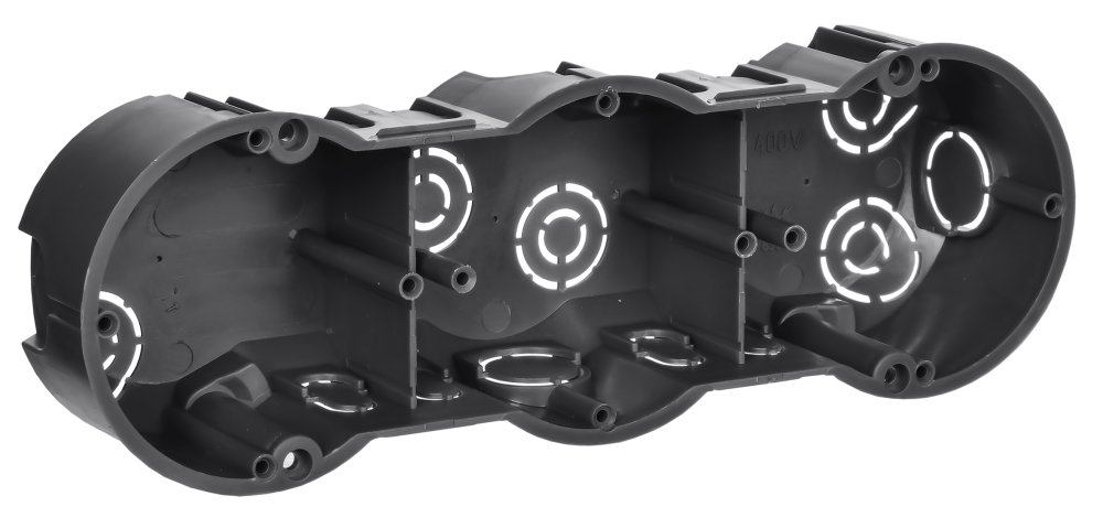 Установочные и распределительные коробки данной серии предназначены для монтажа в сплошные кирпичные или бетонные стены различных электроустановочных изделий: розеток, выключателей, диммеров. Используя крышку, изделия можно применять в качестве распаячной (разветвительной) коробки для развода кабеля и проводов. Материал изготовления: полистирол. Материал коробок является безгалогенным («HF» — halogen-free). Степень защиты: IP20. Температура эксплуатации: -15...+60. Цвет: черный. Количество вводов: 10. Количество мест: 3. Размер: 212х70х45мм.