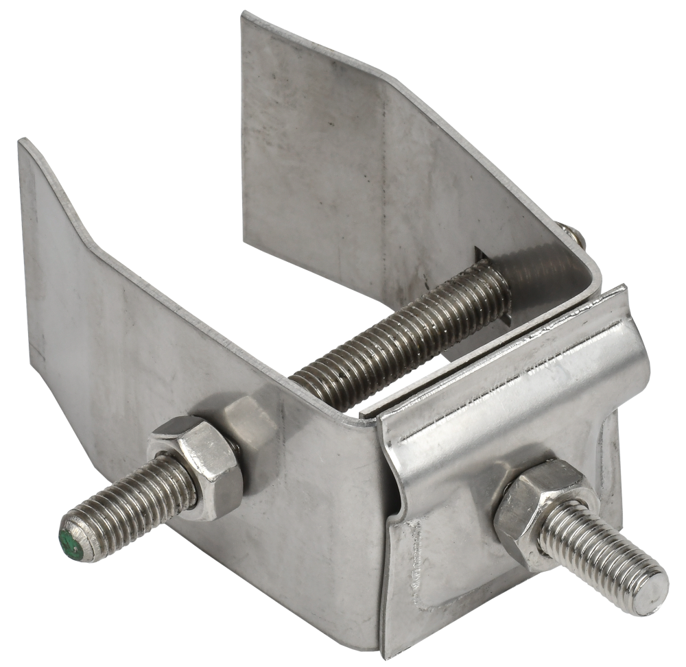 Держатель проводника круглого 6-10мм для конструкций предназначен для крепления круглых проводников на объемных конструкциях под различными углами наклона. Крепление осуществляется при помощи болтового соединения. Материал корпуса - нержавеющая сталь.