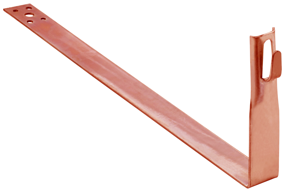 Держатель проводника круглого для черепичной кровли с безболтовым зажимом предназначен для закрепления прутка на черепичной, мягкой и шиферной кровле. Держатель крепится к кровле при помощи метизов. Фиксация проводника происходит при помощи зажима в «язычке» держателя. Материал корпуса - медь.