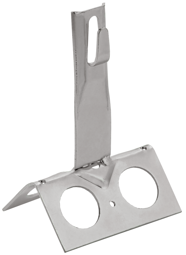 Держатель проводника круглого для конька с безболтовым зажимом широкий предназначен для закрепления прутка на коньке скатной кровли. Зажим проводника происходит путем загибания «язычка» держателя. На коньке крепится при помощи метизов. Материал корпуса - нержавеющая сталь.