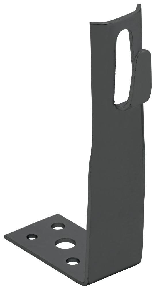 Держатель угловой с безболтовым зажимом предназначен для монтажа проводника на горизонтальные, вертикальные или наклонные поверхности. Монтируется на поверхности при помощи саморезов. Зажим проводника происходит путём загибания «язычка» держателя. Материал корпуса - сталь с термодиффузионным цинковым покрытием.