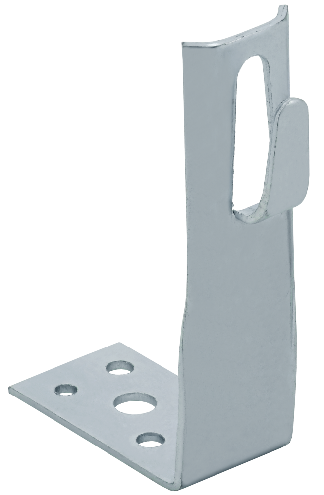 Держатель угловой с безболтовым зажимом предназначен для монтажа проводника на горизонтальные, вертикальные или наклонные поверхности. Монтируется на поверхности при помощи саморезов. Зажим проводника происходит путём загибания «язычка» держателя. Материал корпуса - сталь горячеоцинкованная.