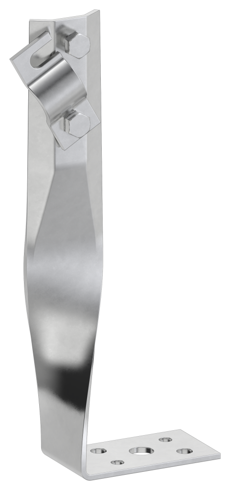 Держатель угловой скрученный с болтовым зажимом предназначен для монтажа проводника на горизонтальные, вертикальные или наклонные поверхности. Скрученная конструкция держателя позволяет крепить проводник на узкие парапеты. Монтируется на поверхности при помощи саморезов. Зажим проводника происходит при помощи болтового соединения. Материал корпуса - нержавеющая сталь.