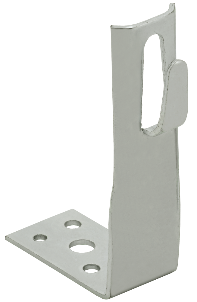 Держатель угловой с безболтовым зажимом предназначен для монтажа проводника на горизонтальные, вертикальные или наклонные поверхности. Монтируется на поверхности при помощи саморезов. Зажим проводника происходит путём загибания «язычка» держателя. Материал корпуса - нержавеющая сталь.