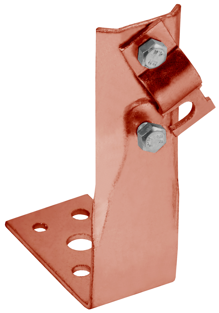 Держатель угловой с болтовым зажимом предназначен для монтажа проводника на горизонтальные, вертикальные или наклонные поверхности. Монтируется на поверхности при помощи саморезов. Зажим проводника происходит при помощи болтового соединения. Материал корпуса - медь.