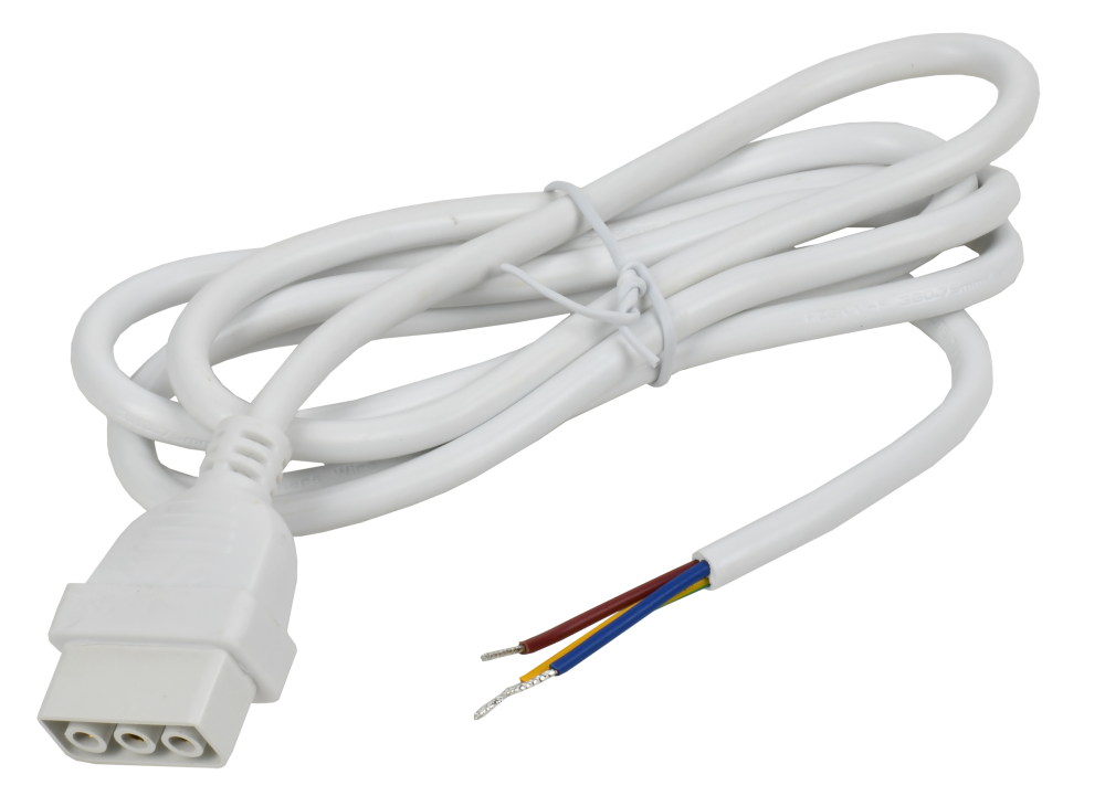 Кабель питания белого цвета с сечением проводников 3*0,75. Длина кабеля составляет 1,5 м. Применяется для подключения к сети линейных светильников серии 1020, 1022.